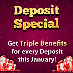 | £ 30 - £ 49 | 300% Bonus (or) 50% Cash + 12 Coins |